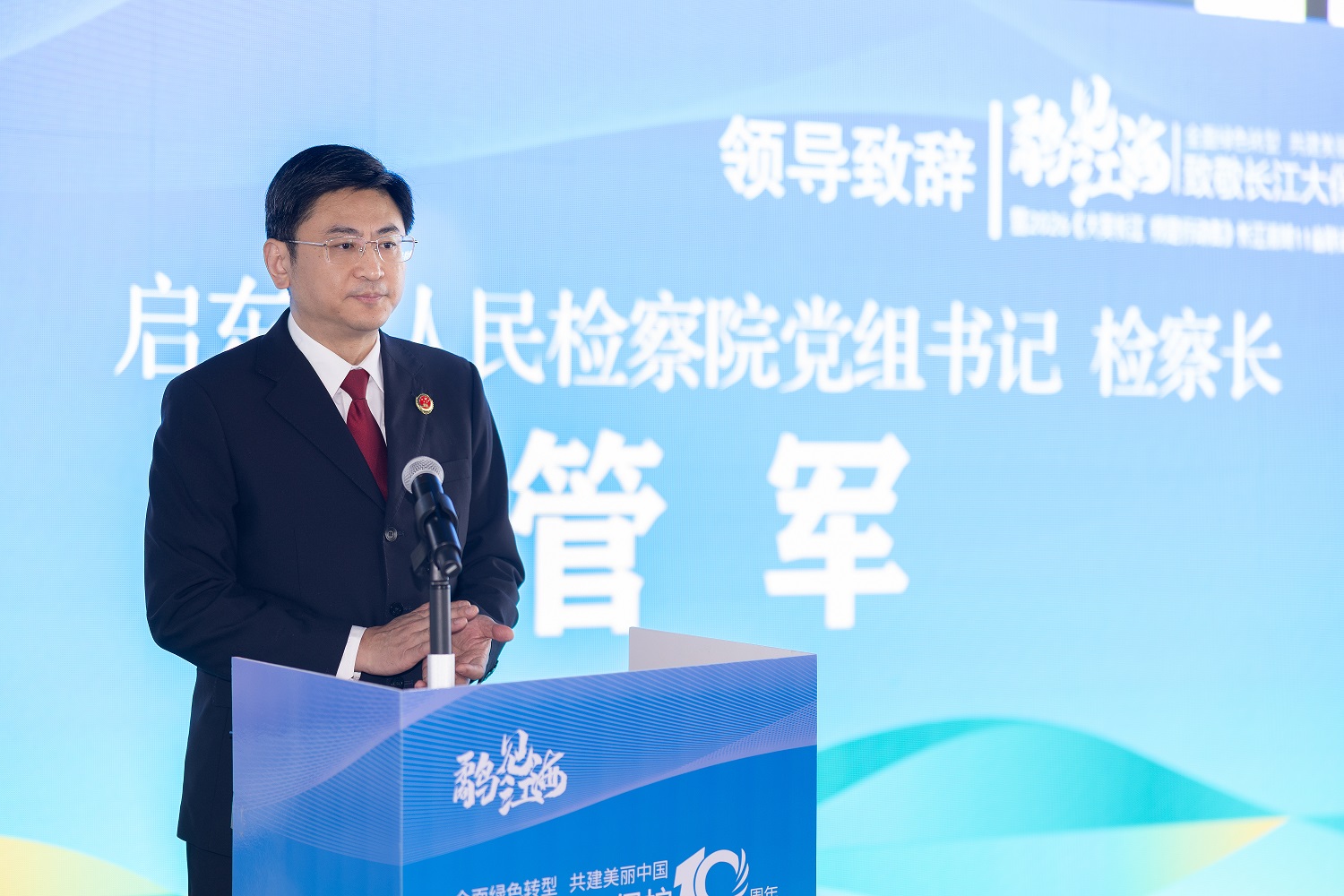 启东市检察院党组书记、检察长管军作现场致辞。他表示,长江口北支湿地是江海交汇的重要生态屏障,守护好这片湿地是长江大保护的重要一环。他呼吁崇启海三地深化跨区域协作,凝聚起检察、行政、统战、社会、志愿者多方合力,画好生态保护“同心圆”。