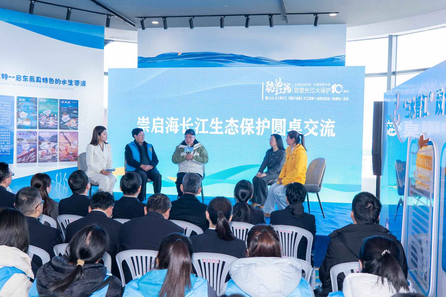 南通市爱尚环保公益发展中心理事长、启东市新联会理事季金卫就《大美长江,我是行动者》南通站项目进行成果分享,让在场人员直观感受到近年志愿服务成果。志愿交流环节,来自崇启海三地的志愿组织代表和潮汐树作品拍摄者袁小花以圆桌交流形式,进行现场分享,凝聚起守护长江的志愿力量。启东市检察院“益启守护”益心为公志愿者代表宣读《长江生态保护志愿服务倡议书》,号召全社会积极投身生态保护行动。